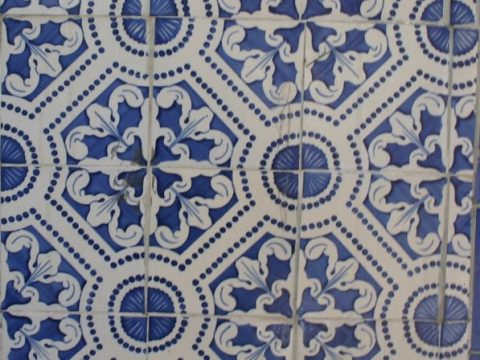 Padrão Vegetalista azul sobre fundo azul-claro.