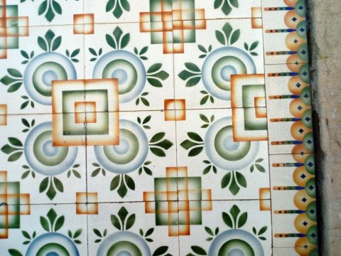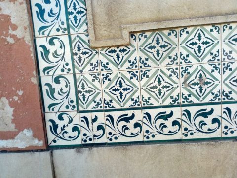 Padrão Geométrico aerográfico com arquitrave e platibanda decoradas.