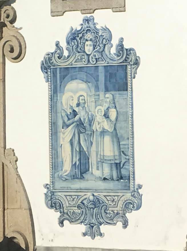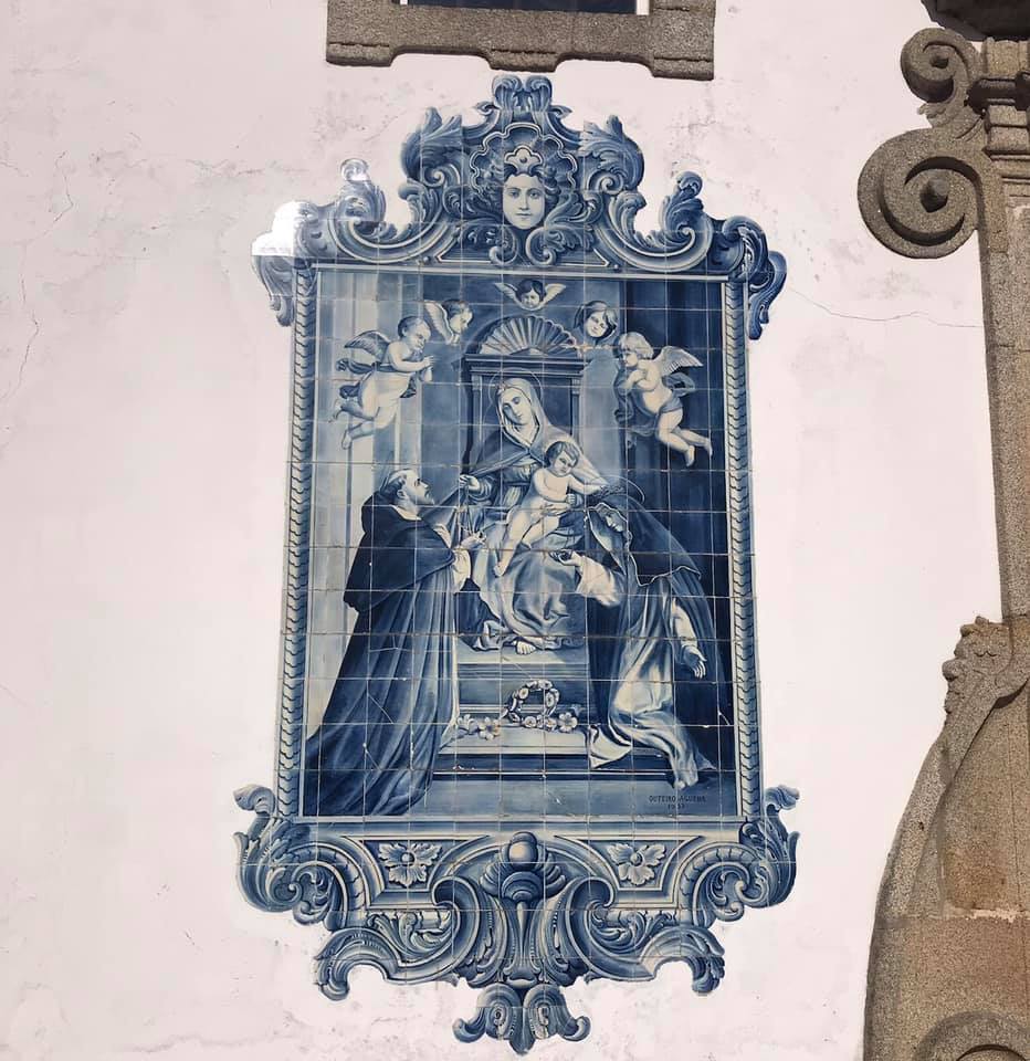 Descrição: Conjunto de dois painéis monumentais que ladeiam o portal de entrada da Igreja de São Paio do Requeixo. Concebidos em tons de azul, com molduras de inspiração neoclássica e barroca, foram produzidos na Fábrica do Outeiro (Águeda). O painel no lado esquerdo da entrada representa Nossa Senhora do Rosário a entregar o terço a São Domingos, com Santa Catarina de Sena. É de autoria do pintor Licínio Pinto e datado de 1933. No lado direito consta uma representação do episódio bíblico da Apresentação de Jesus no Templo, datado de 1958, sendo seu autor o mestre João Breda.