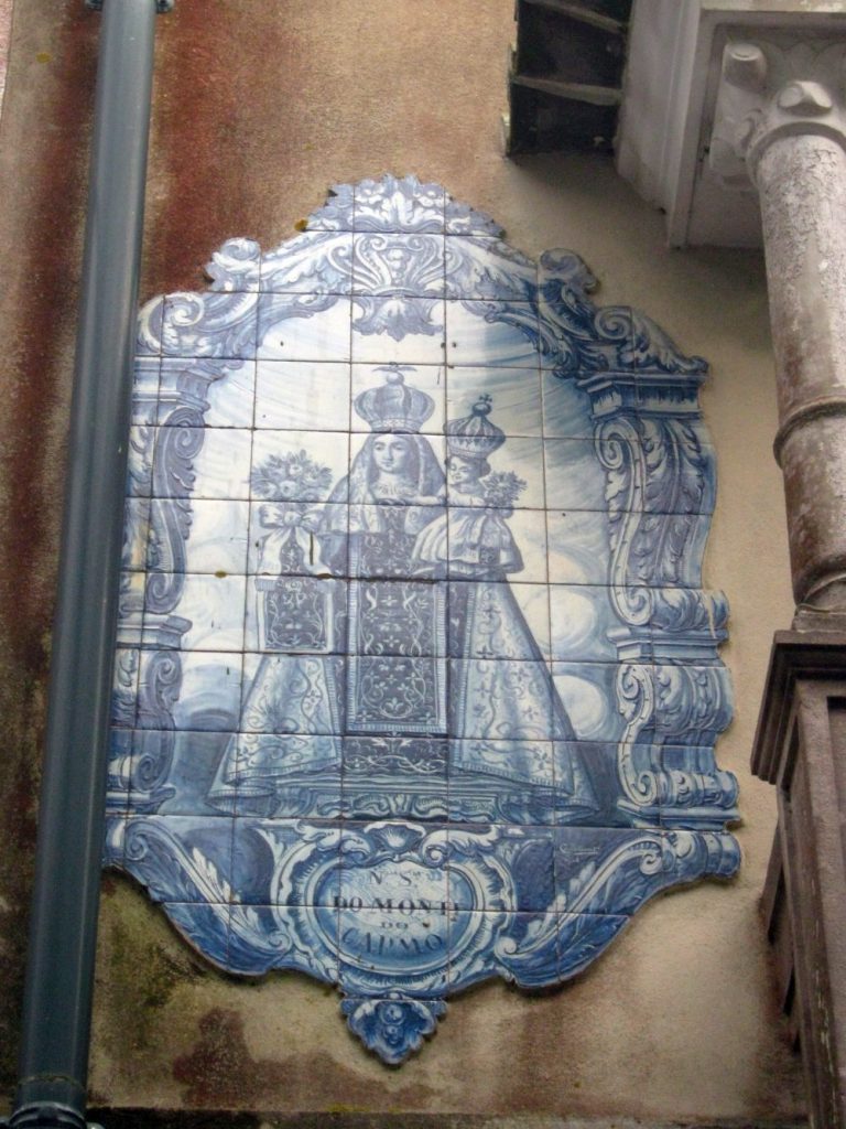 Descrição: Painel de autoria de Gabriel Constante, datado de 1928. Realça-se o fabuloso escapulário, atributo principal da santa. A moldura expressa características neoclássicas, integrando volutas e elementos vegetalistas. Sob a figuração, uma cartela concheada ostenta a inscrição «N. S.ra DO MONTE DO CARMO». A particularidade reside no facto de o conjunto – cena e moldura – ter sido concebido na totalidade em tons de azul.